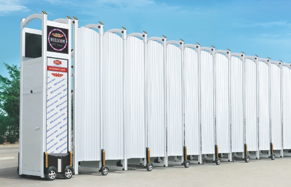 Là mẫu cổng xếp hợp kim nhôm có sử dụng cánh gió tạo sự kín đáo cho doanh nghiệp